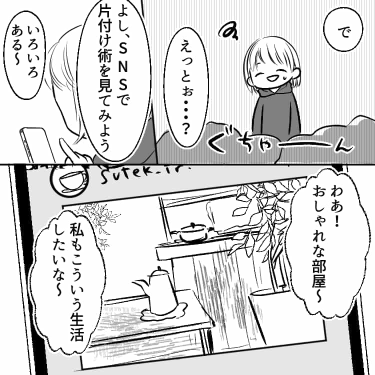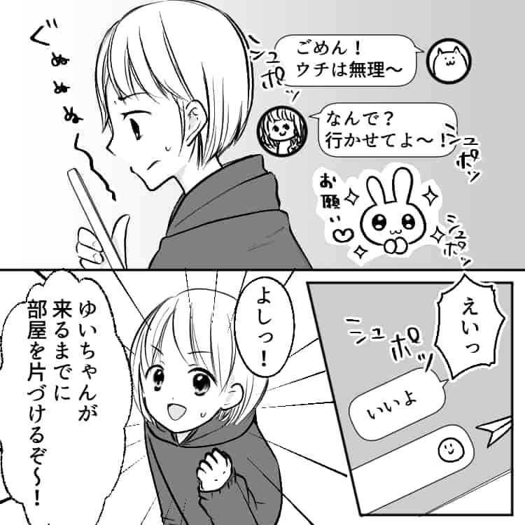 ゆいちゃんが家に遊びに来るまでに、片付けをし丁寧な生活をすると決意した主人公。