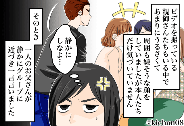 周りが迷惑していることに気づかない人っていますよね。 お父さんがハッキリ物申してくれてスカッとしました。 (30代/女性)行事の最中にお喋りばかりされると困ってしまいますよね。 はっきり言えるお父さんの行動はとても素晴らしいと思いました。 (40代/女性)※この記事はユーザーのエピソードをもとに作成しています。