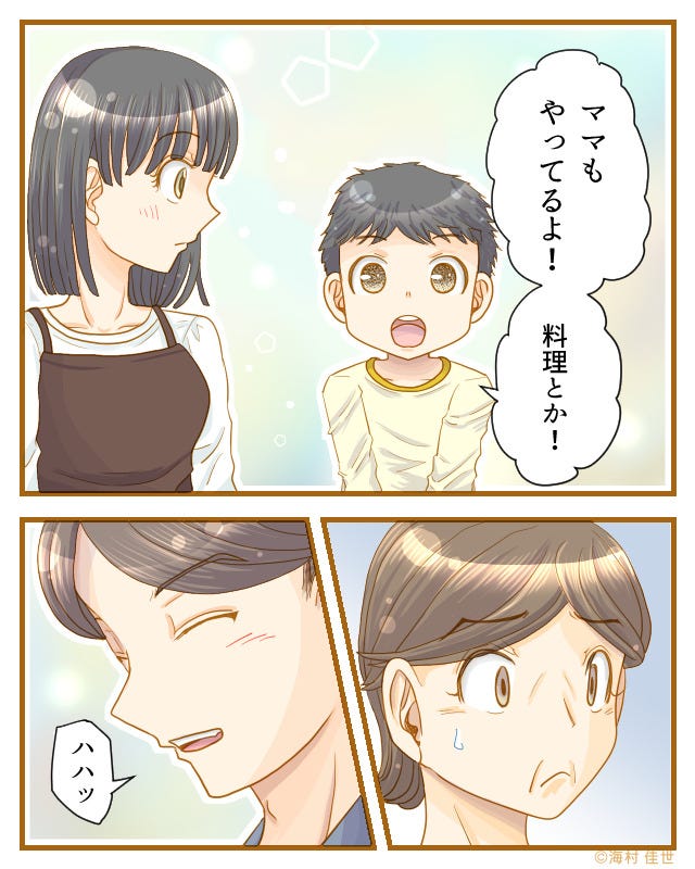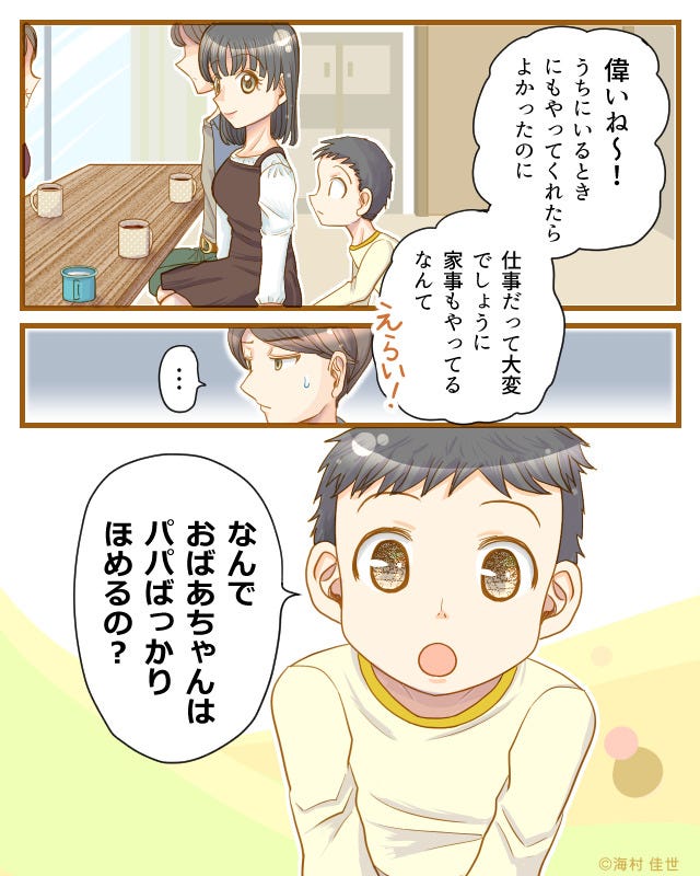 夫ばかり褒められている状況に違和感を覚えた息子。