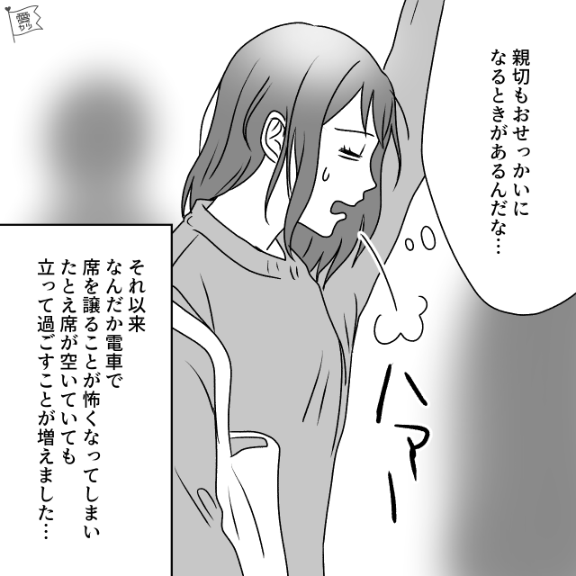 親切心のつもりで席を譲りましたが、女性に怒られてしまった主人公。