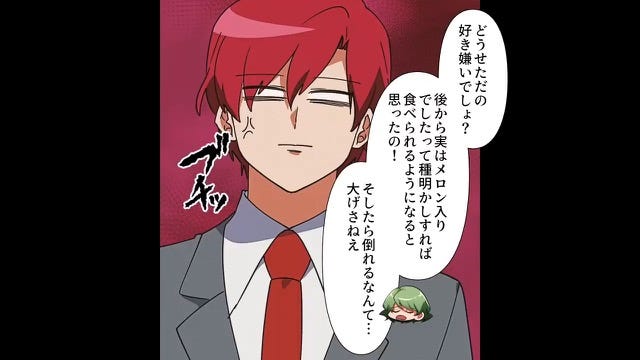 食べてすぐ、主人公にアレルギー反応が出ます。