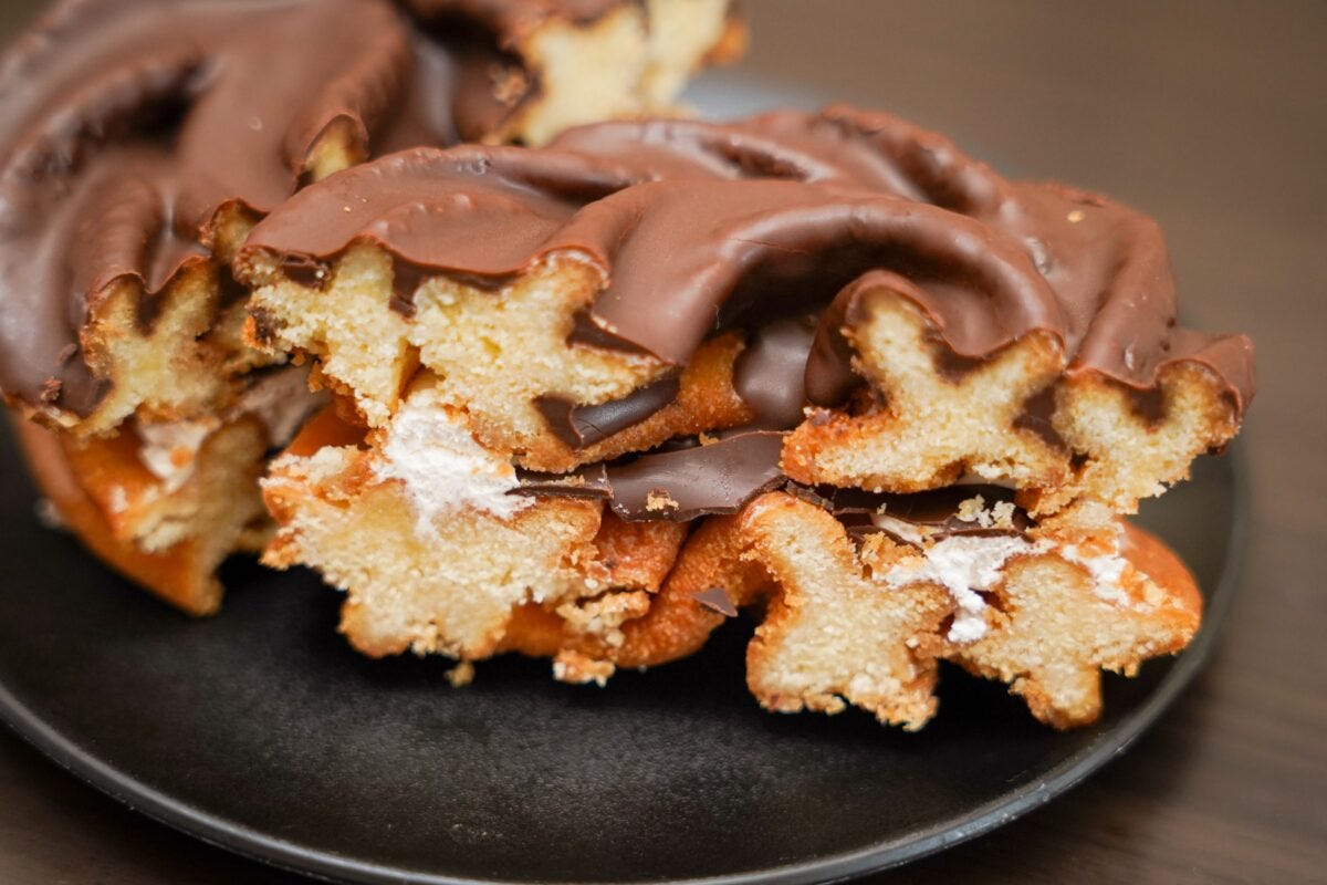 2つのクッキードーナツでホイップクリームをサンドし、そこに上からチョコレートをかけてしまうというギルティ過ぎる商品。一口食べるとガツンとした甘さが脳天を突き抜け...最高。明らかにハイカロリーな味わいで一口あたりの満足感がすごい。