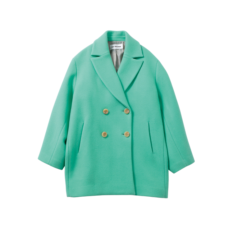 明るくソフトなグリーンで爽やかに。4つのボタンがアクセントになっていておしゃれ。