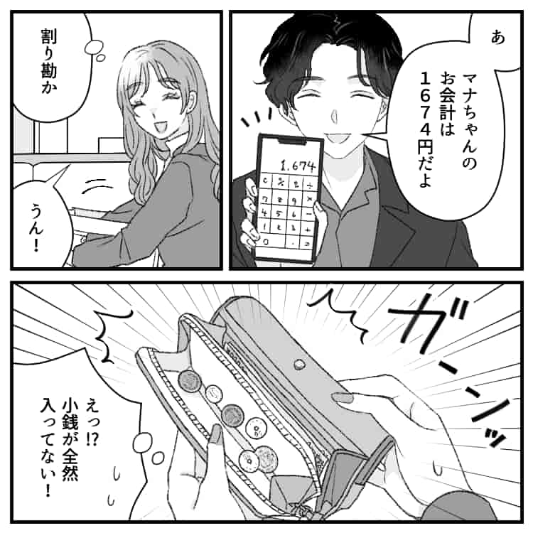 小銭がない彼女はカナトくんの1円単位の割り勘に、どう対応するのでしょうか!?