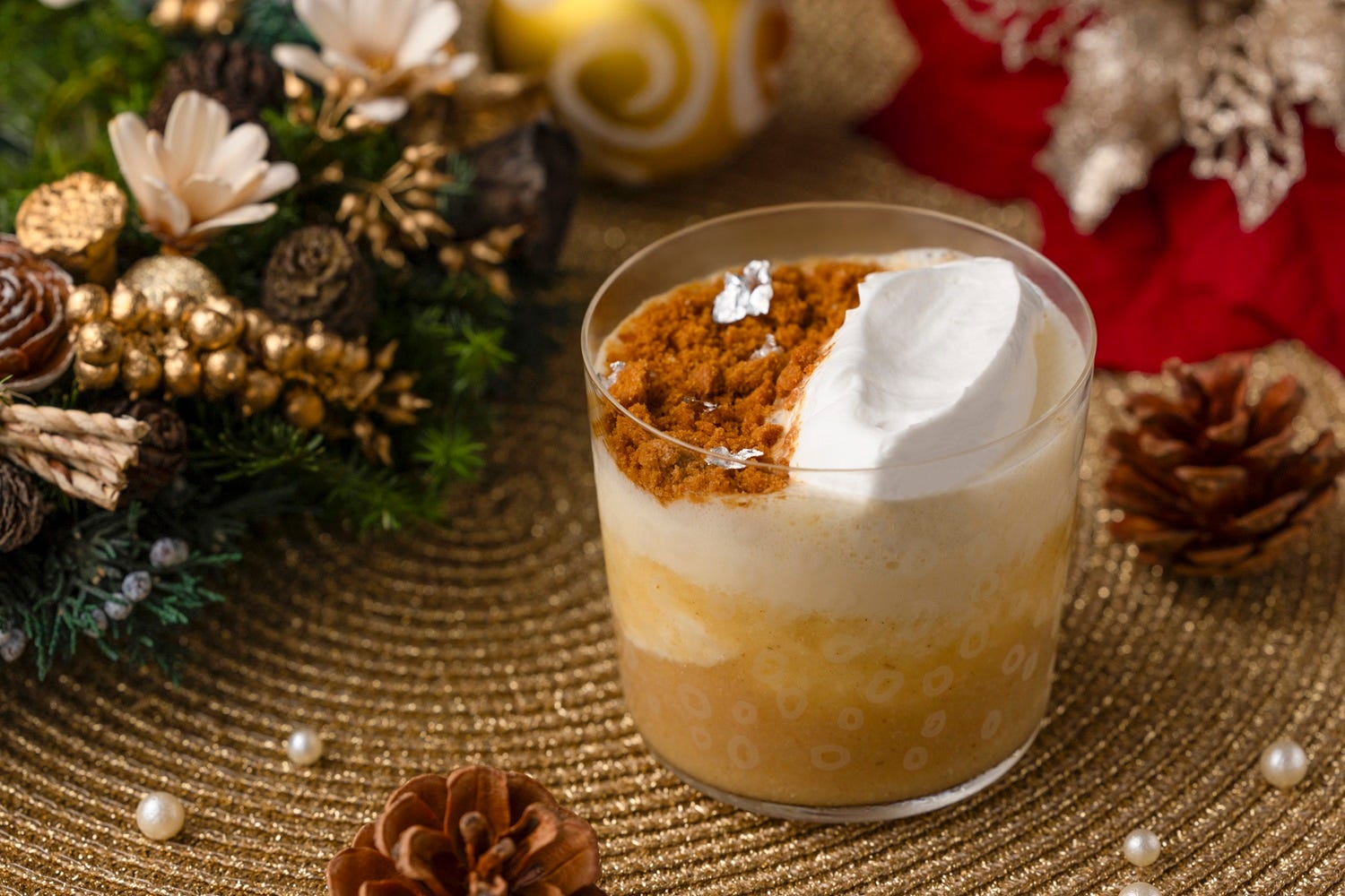 「洋梨とアーモンドミルクのエッグノッグ」900円/提供時間:15:00~21:00/提供場所:OMOカフェ&バル スイーツと一緒に楽しみたいのが、クリスマス限定ドリンク「洋梨とアーモンドミルクのエッグノッグ」。カスタードクリームの風味に洋梨の爽やかさが加わった特別なクリスマスフレーバーをぜひ味わって。