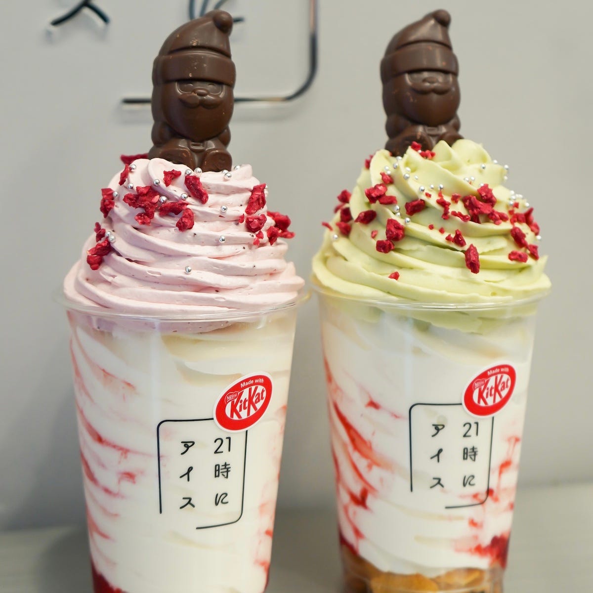大阪発の夜アイス専門店「21時にアイス」よりキットカットとのコラボ商品が登場! 昨年は販売開始約1週間で完売した“サンタ型キットカット”が添えられた期間限定メニューです。