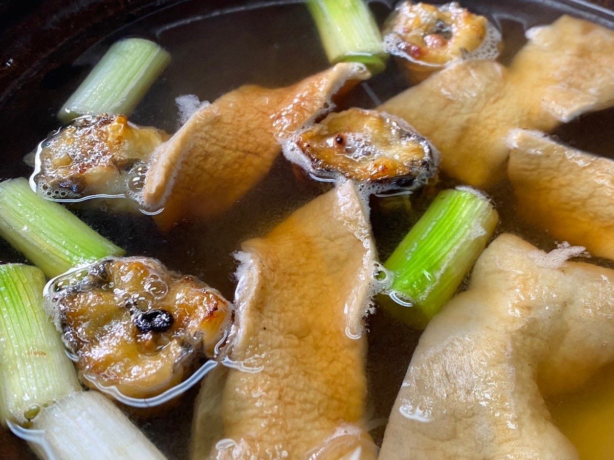 筒焼きという伝統的な焼き方でじっくり40分間焼いた“うなぎ”を使用しているため、皮はパリッと、身はふっくらとしています。山形県の名産で板状の「庄内麩」や白ネギと一緒に食べると、うなぎの旨味と出汁の味が口の中にあふれます。