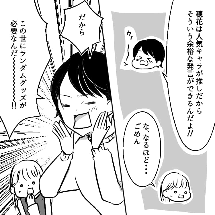 ミナに「なぜ、この世にランダムグッズが必要か」を説かれた主人公。