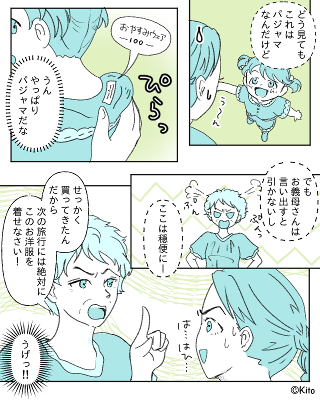 怒りが収まらない義母は「次の旅行でこの洋服を着せなさい」と言いました。