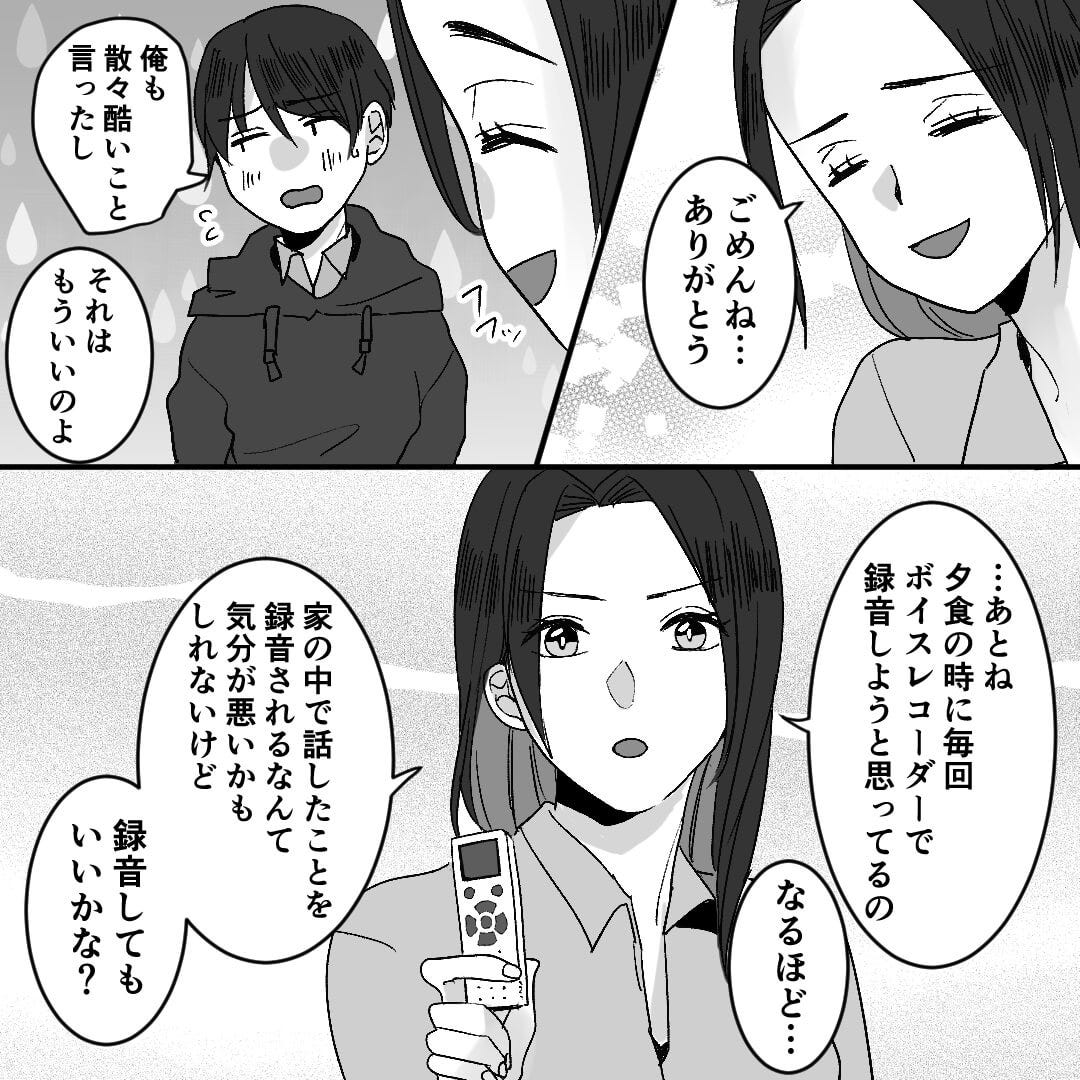 その後、モラハラの証拠を集めるために2人は夫のいない間に作戦会議を始めました。