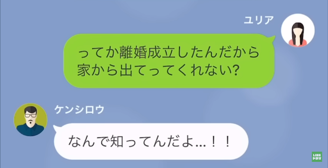続けて「離婚成立したんだから家から出てってくれない?」と言った主人公。