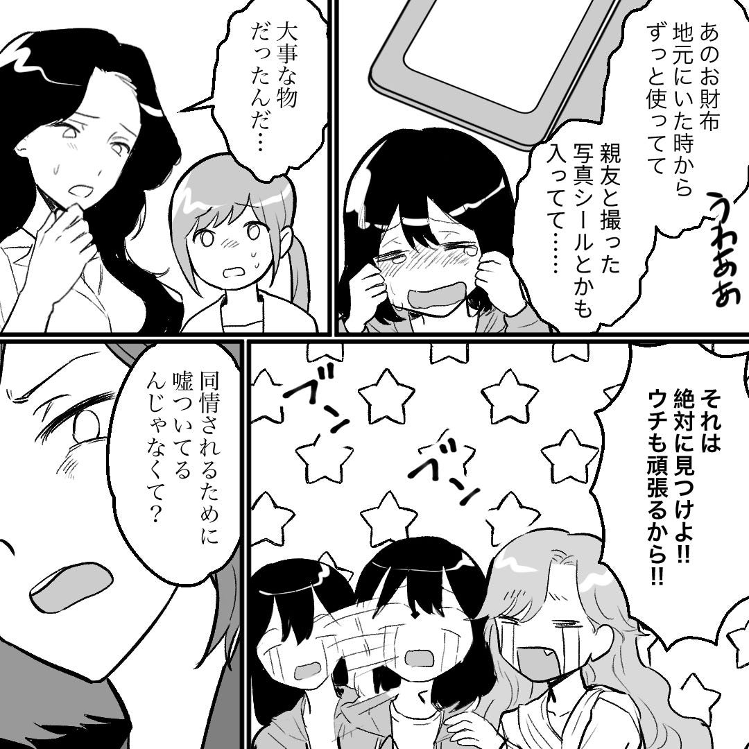 主人公にとっては、親友と撮った写真シールなども入っている大切な財布なのです。