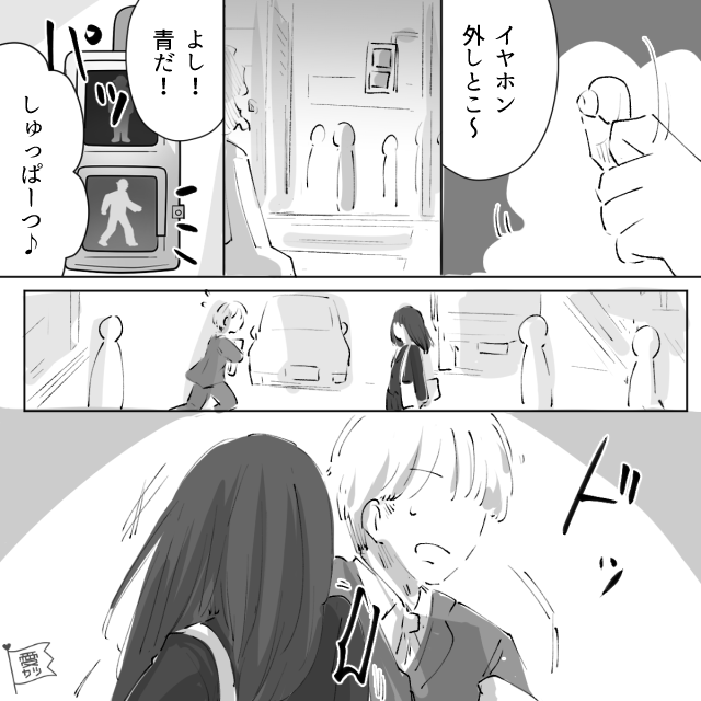 横断歩道を渡っていると、思わぬハプニングが起きてしまいます…。