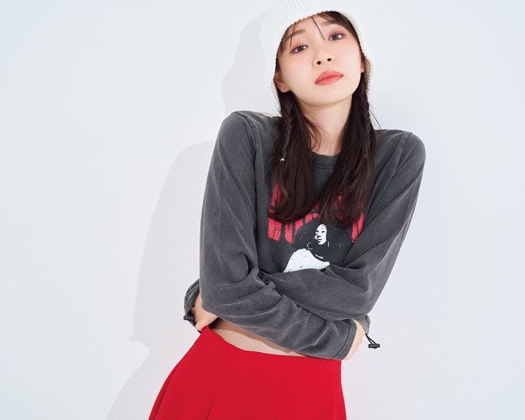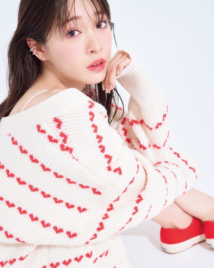 ヘアもウエットな質感で、こちらも色っぽい仕上がりに。着てもらってわかったけど、赤の服めっちゃ似あう!」(アカリン)