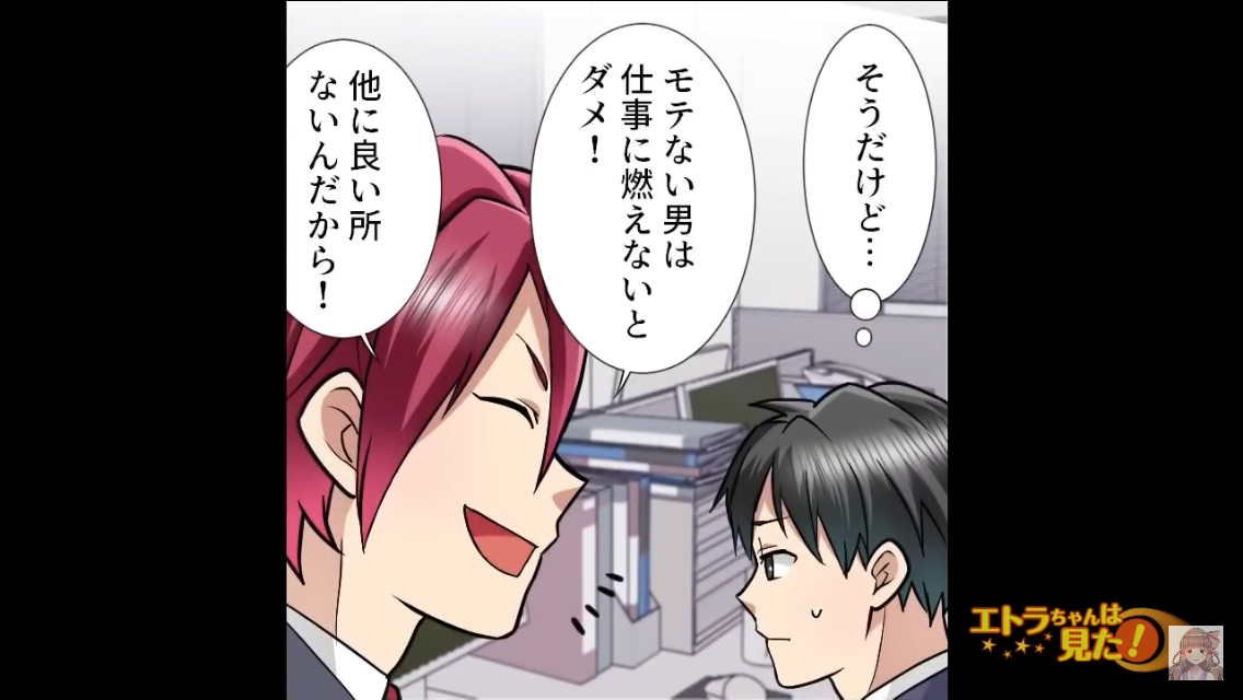 サラリーマンで未婚の主人公は、無神経な先輩の言動に悩まされていました。