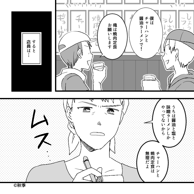 すると、店員から「うちは醤油と塩と味噌ラーメンしかやってないから」と言われました。