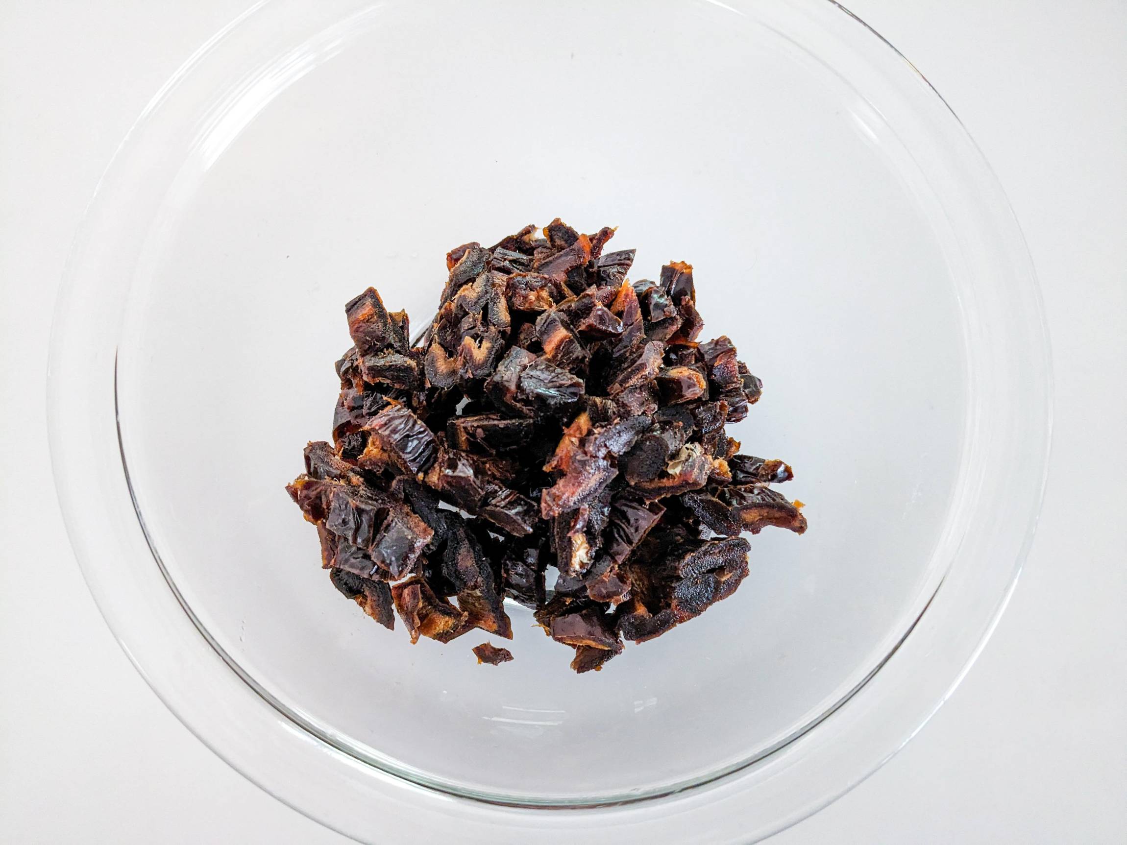 デーツは包丁で5㎜ほどに細かく刻みます。