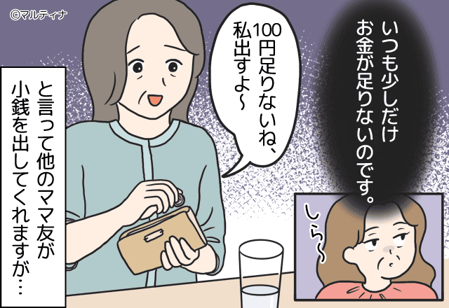 そうなると「100円足りないね…」と他のママ友が小銭を出してくれていました。