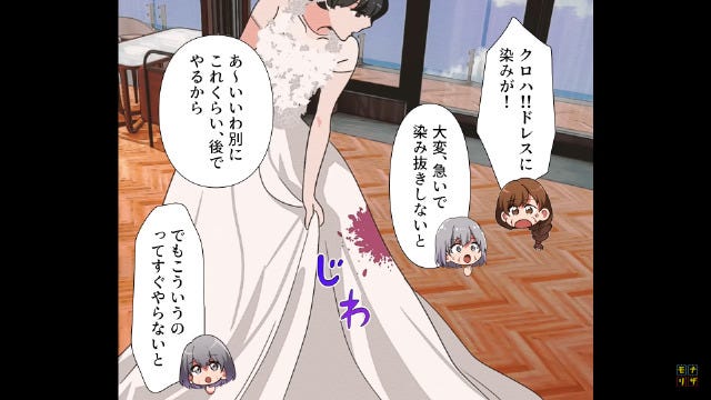 正解は「ドレスにワインをこぼして放置した」でした。