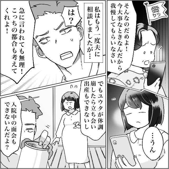正解は「『入院中になにかあっても会えないからね!』と言った」でした。