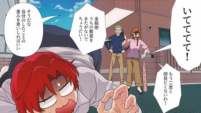 「二度と顔も見たくない!」と言い、家から夫を追い出します。