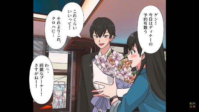 主人公が用意したレストランと花束を浮気相手とのデートに使うとは…。