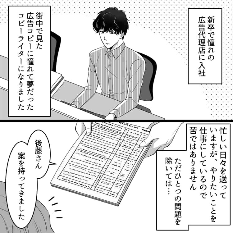 主人公はコピーライターに憧れ、広告代理店に入社しました。
