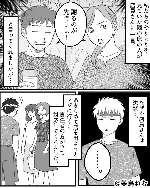 主人公たちのやりとりを聞いていた隣の席の人が、店員に一喝してくれたのですが…。