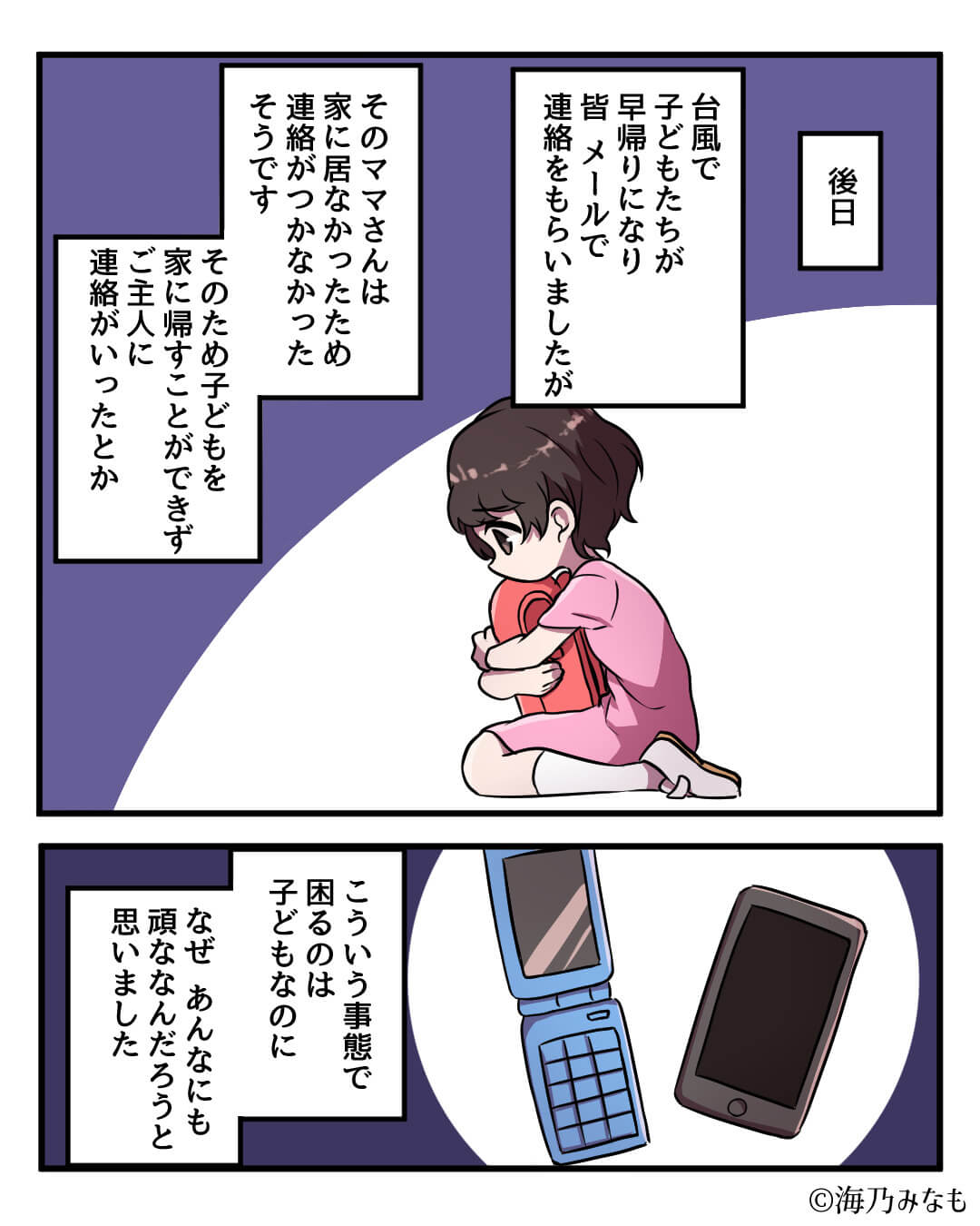 後日、台風のため子どもたちが早帰りになり、学校から連絡がありました。