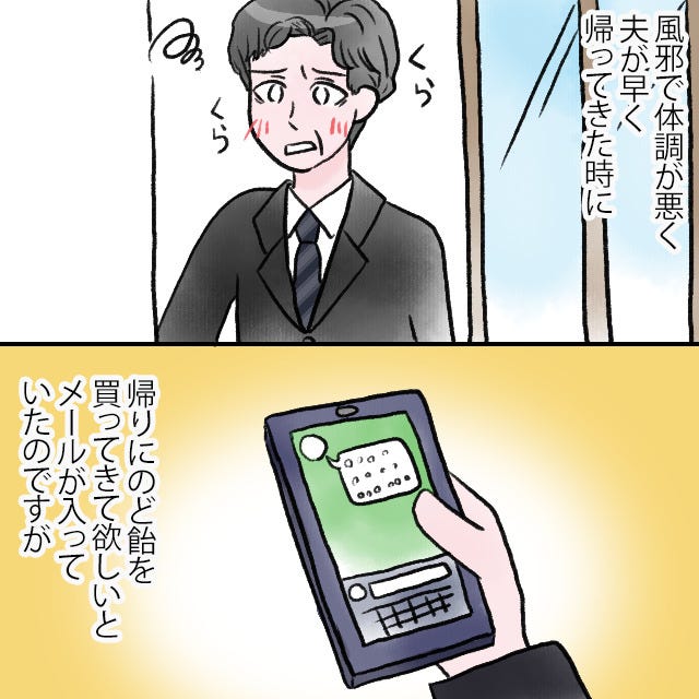 夫から主人公に『帰りにのど飴を買ってきてほしい』とメールが入っていました。