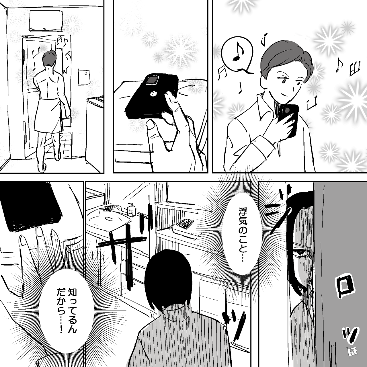 証拠を集めるため、夫が入浴中に携帯電話を確認しようとすると…。