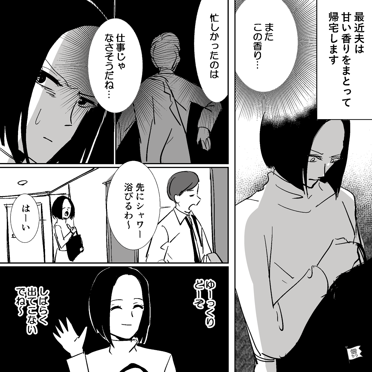そのタイミングで夫が帰宅し、ある違和感を抱いた主人公。