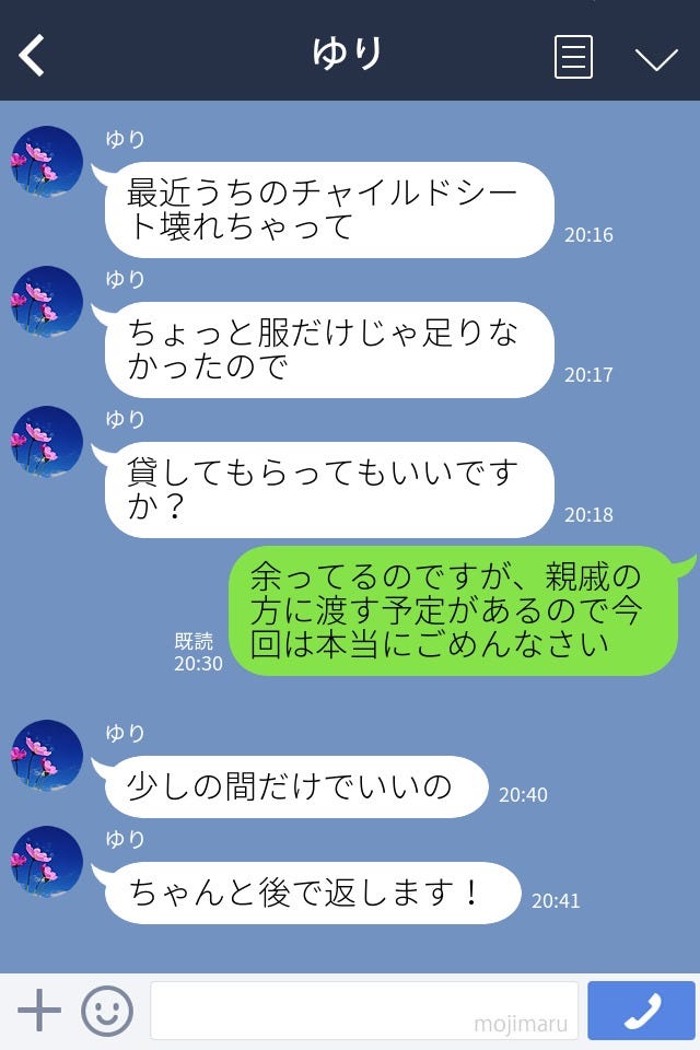 しかし主人公はチャイルドシートを親戚に貸す予定だったので、ママ友の頼みを断りました。