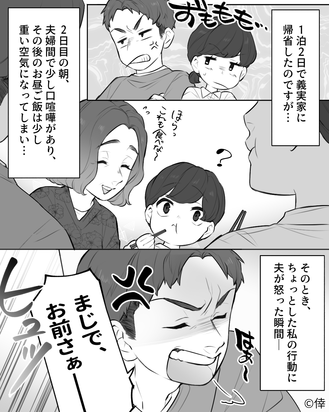 そして義実家からの帰り道、反省した夫から謝罪があり…。