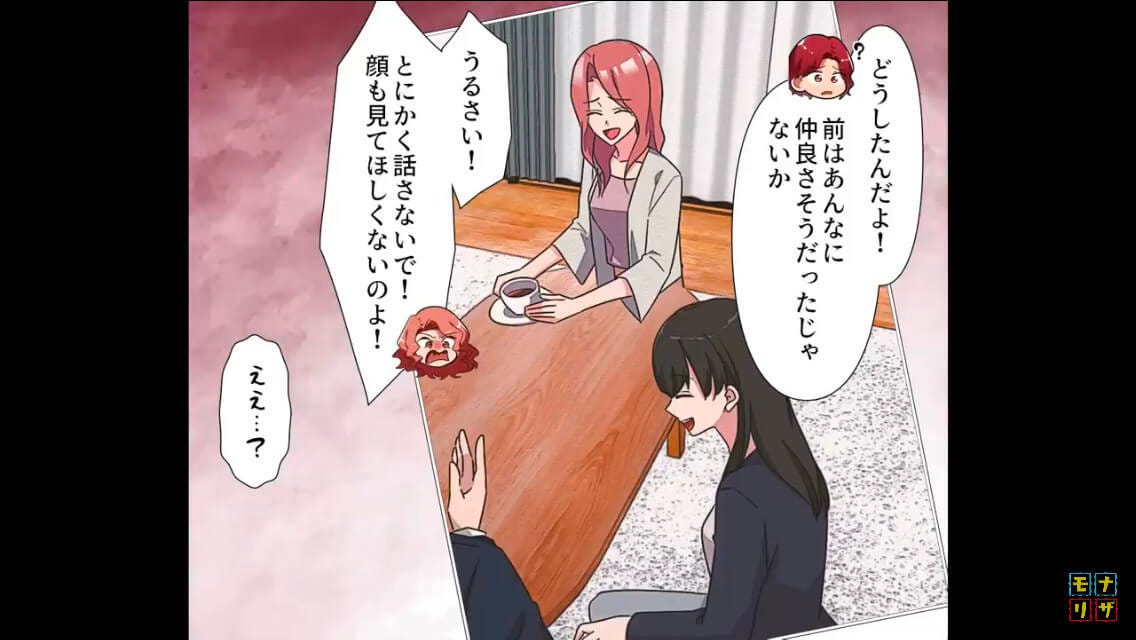 今まで仲がよかった同僚のことも「顔も見てほしくない」と言います。