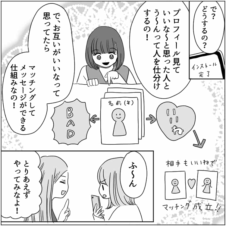 お互いの近況報告をしたら、ミキがマッチングアプリを入れたと言い出して……?