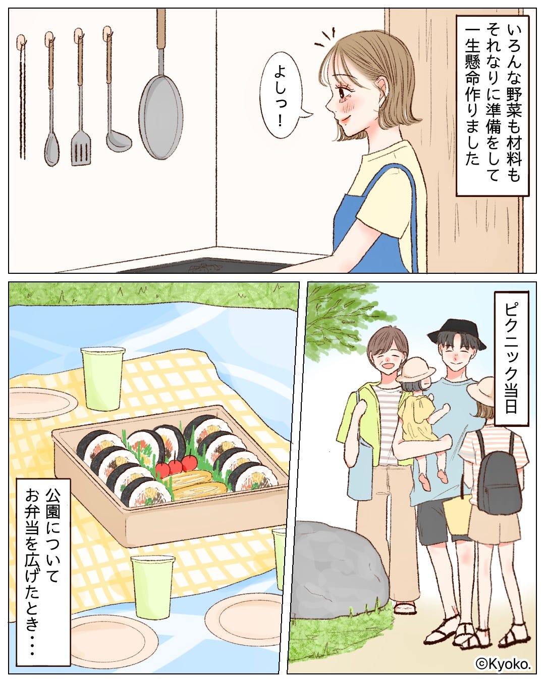 - 【漫画】せっかく作ったのに…義母と夫にお弁当を否定される?!→ショックでピクニックは台無しに…