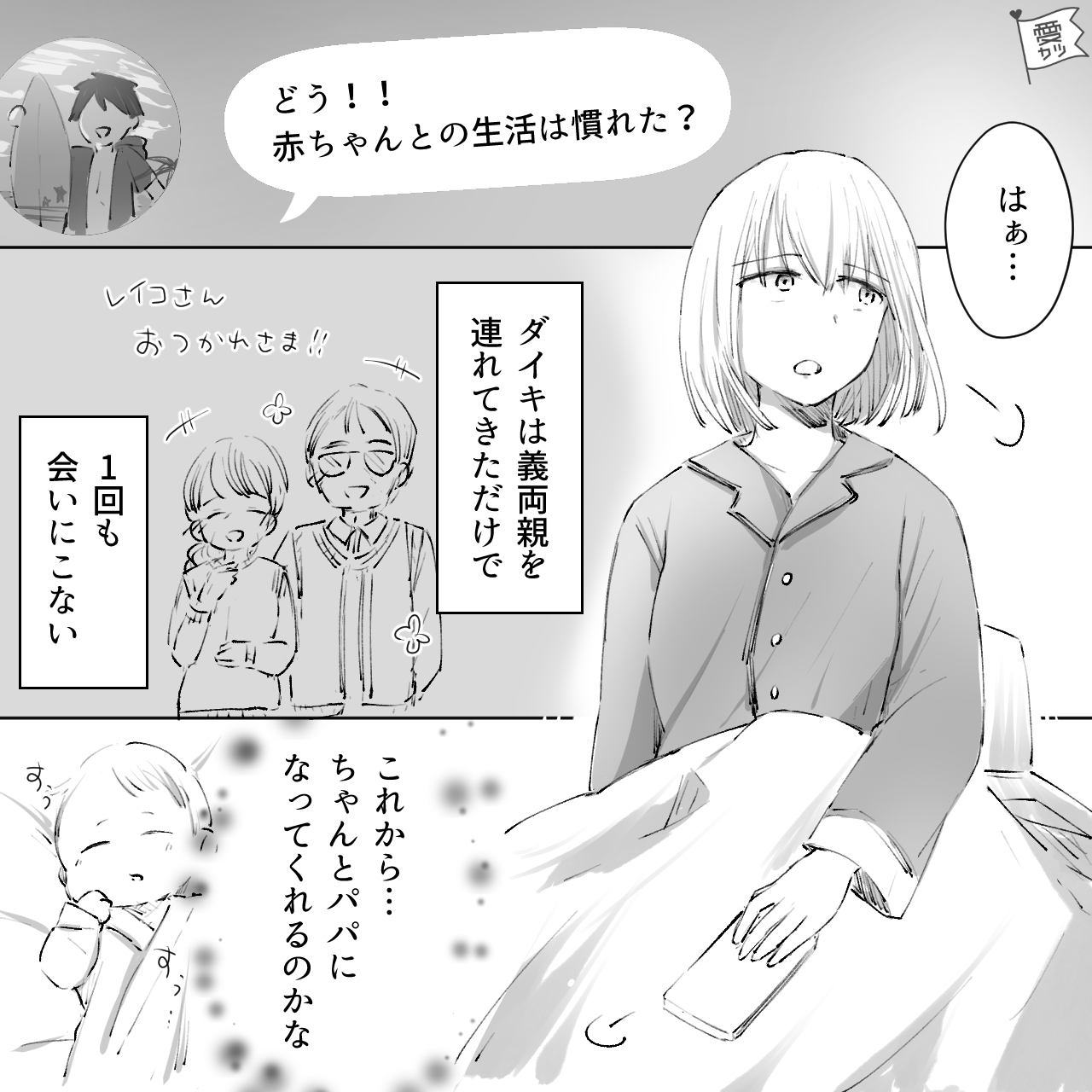 出産を終えた主人公は、一度も面会に来ない夫について考えていました。