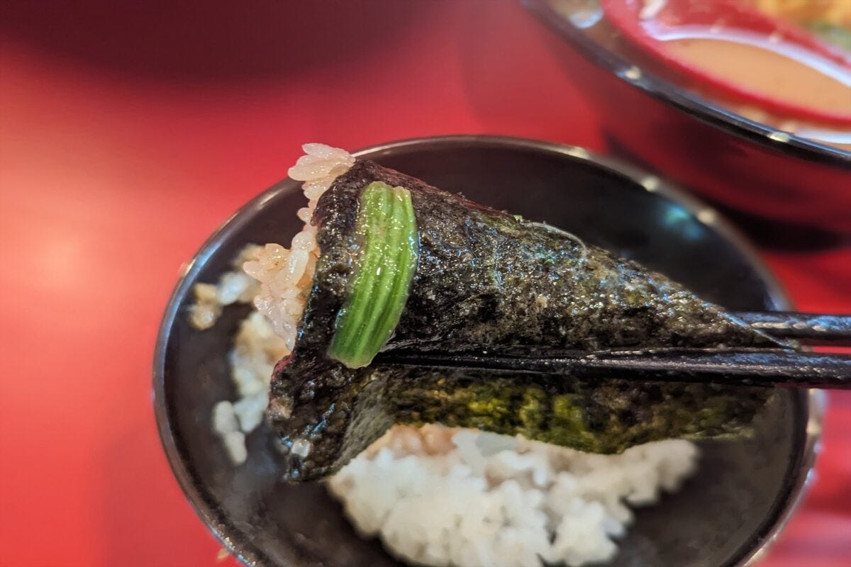 たとえばトッピングの海苔を追加してスープに浸し、家系海苔巻きにするのはマニアのあいだではド定番の食べ方だ。