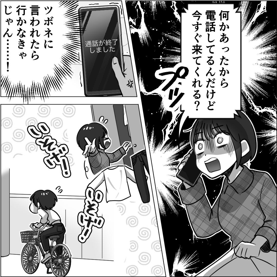 休みにもかかわらず「今すぐ来て」と言われたため、主人公は急いで保育園へ。