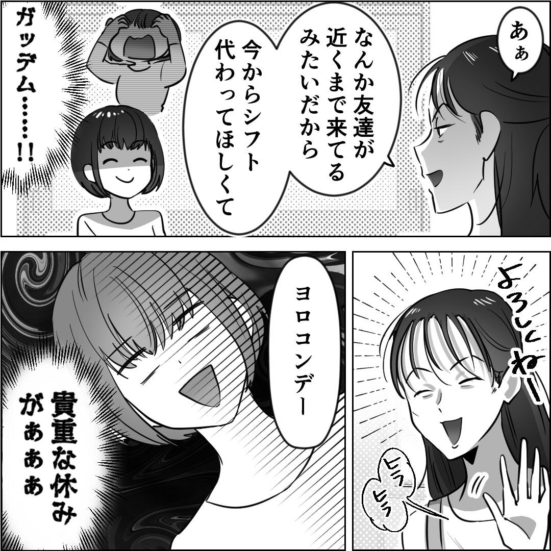 主任はシフトを代わってほしくて主人公を呼び出したのです。