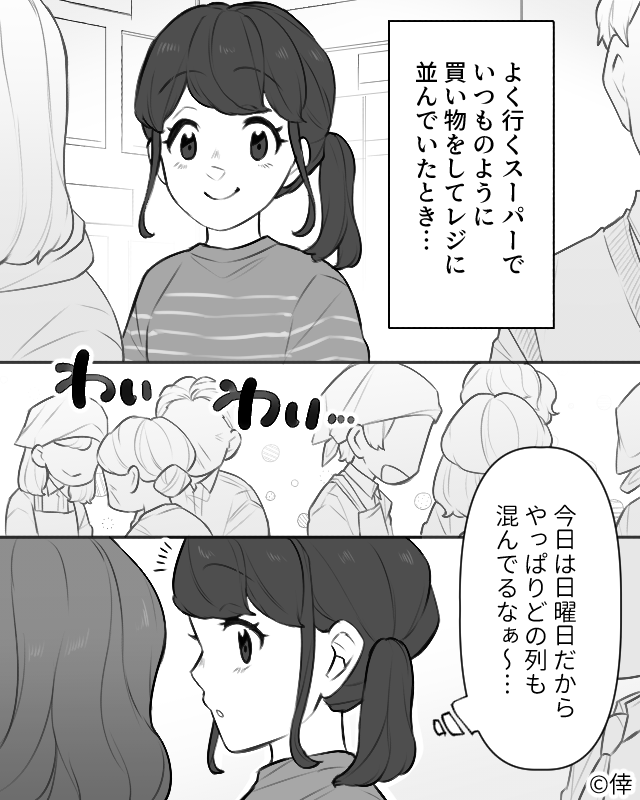 - 【漫画】日曜日のためどこのレジも混んでいる…すると、いきなり列に“割り込む”女性…?!「並んでます!」→すると理不尽な言い訳に呆然!