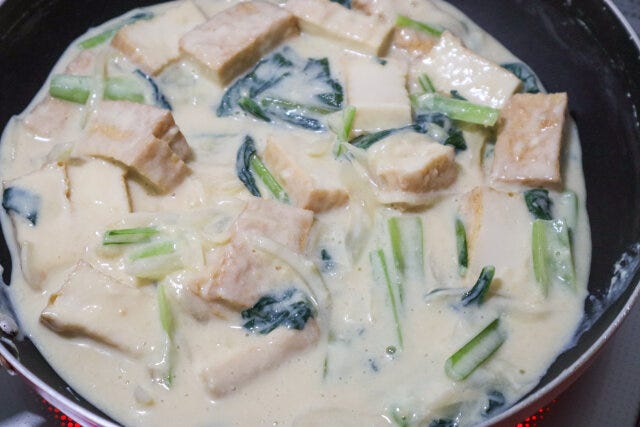 「厚揚げと小松菜の豆乳グラタン」のレシピ