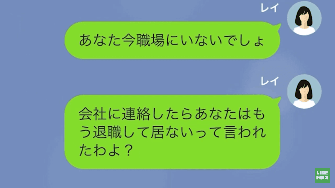 LINEのやりとりをしていたなかで「あなた今職場にいないでしょ」と主人公は指摘します。