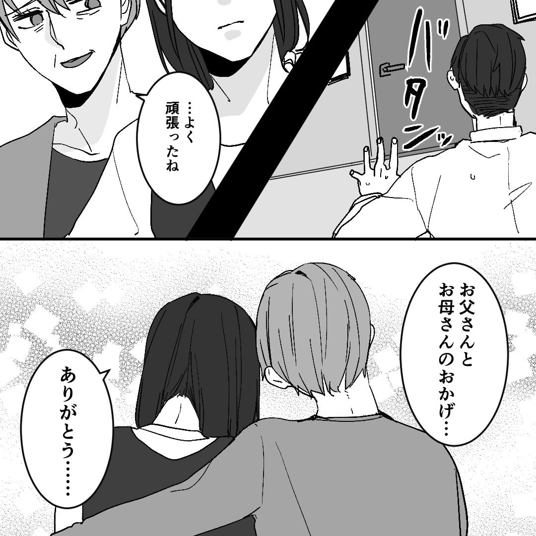 「なんでですか!?」と顔を青ざめる夫ですが、母は主人公を連れて部屋から出ていきました。