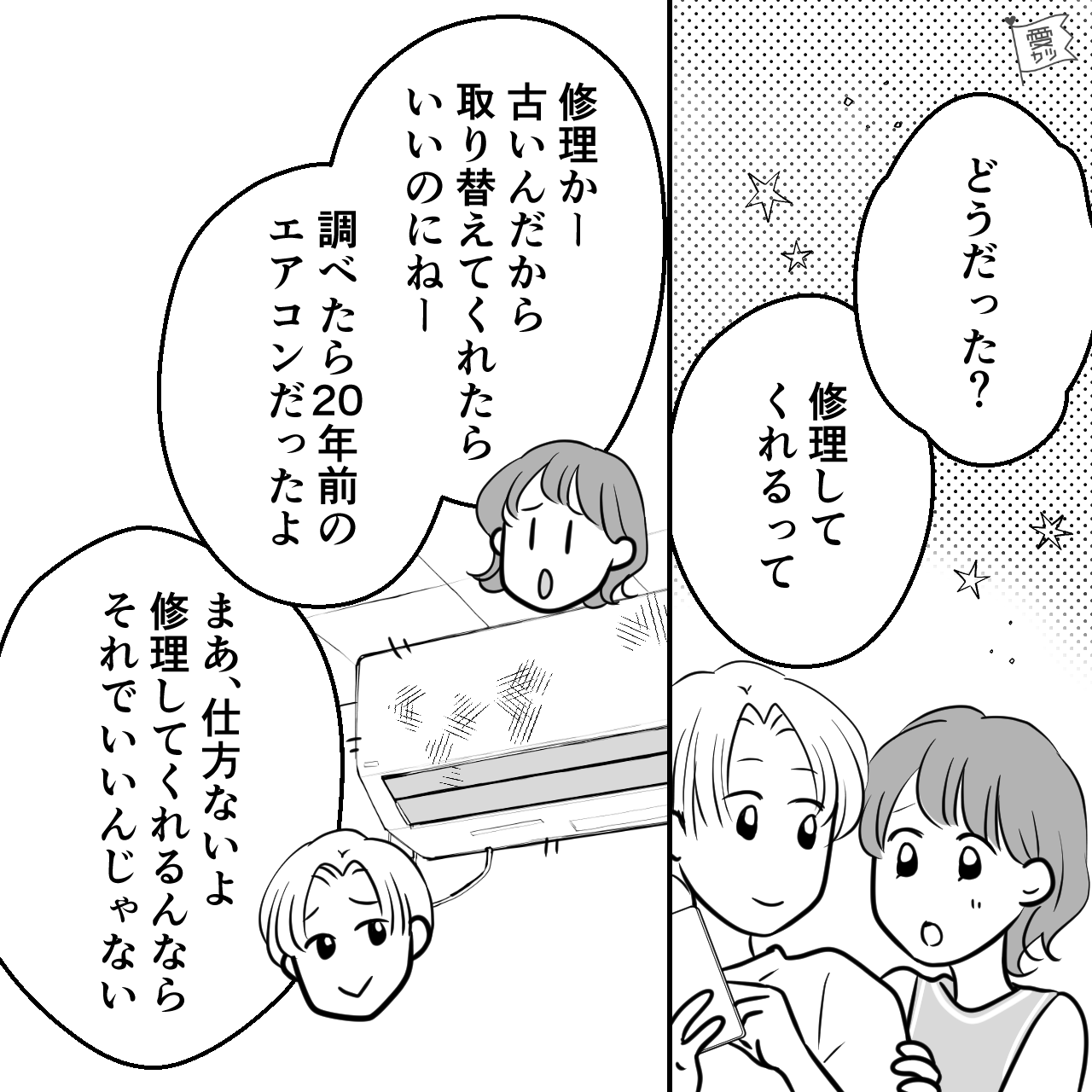 エアコンを修理してくれることになった矢先、起きたこととはなんでしょう?