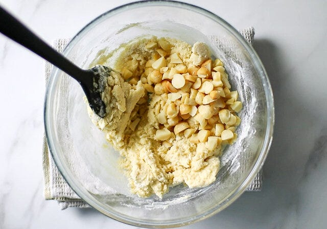 ⑤ 刻んだマカダミアナッツを加えてさっくりと混ぜます。