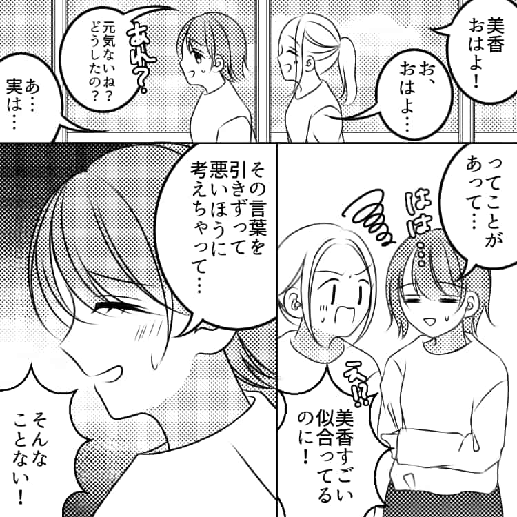 主人公は憧れのモデルがショートカットになったのを見て、憧れて同じ髪型にしました。