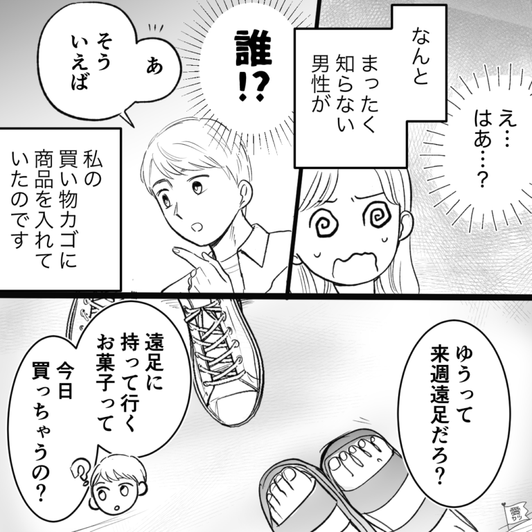 見知らぬ男性が主人公のカゴに商品を次々と入れていたのです。