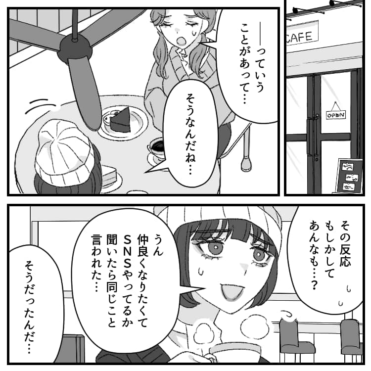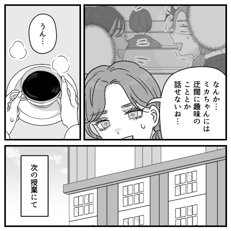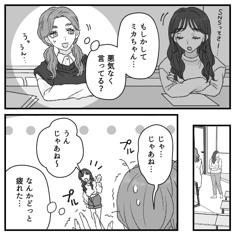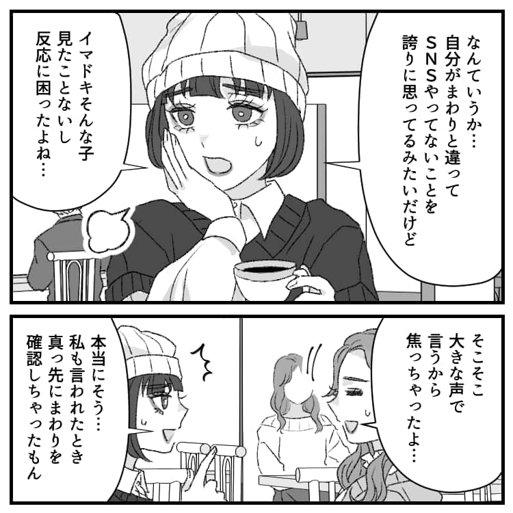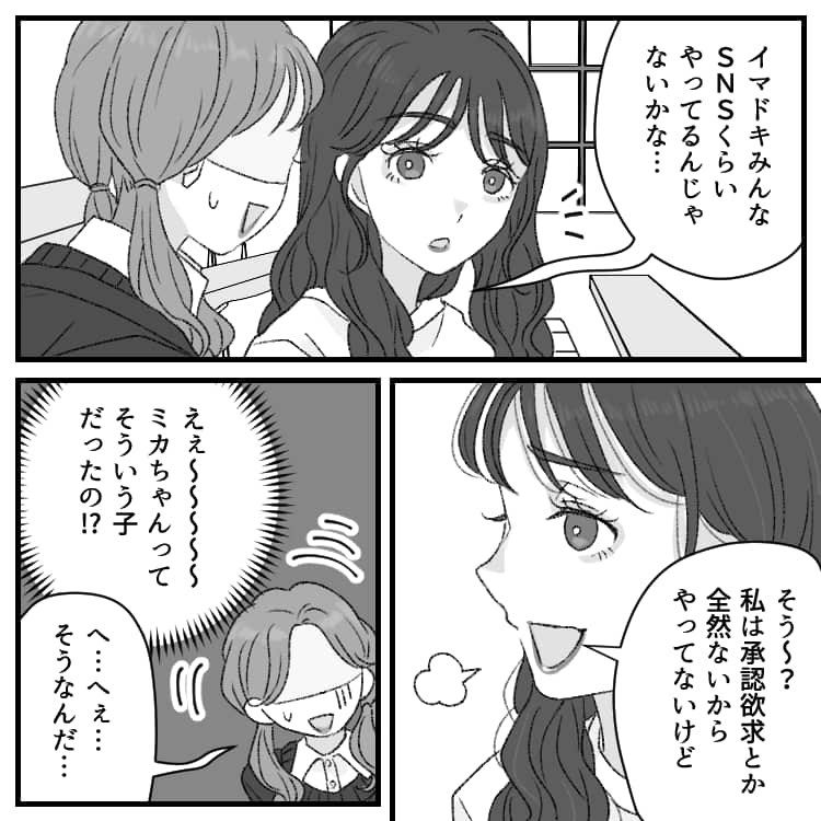 ミカの「SNSやってる人って承認欲求の塊じゃん?」という衝撃的な発言にヒヤヒヤする主人公。